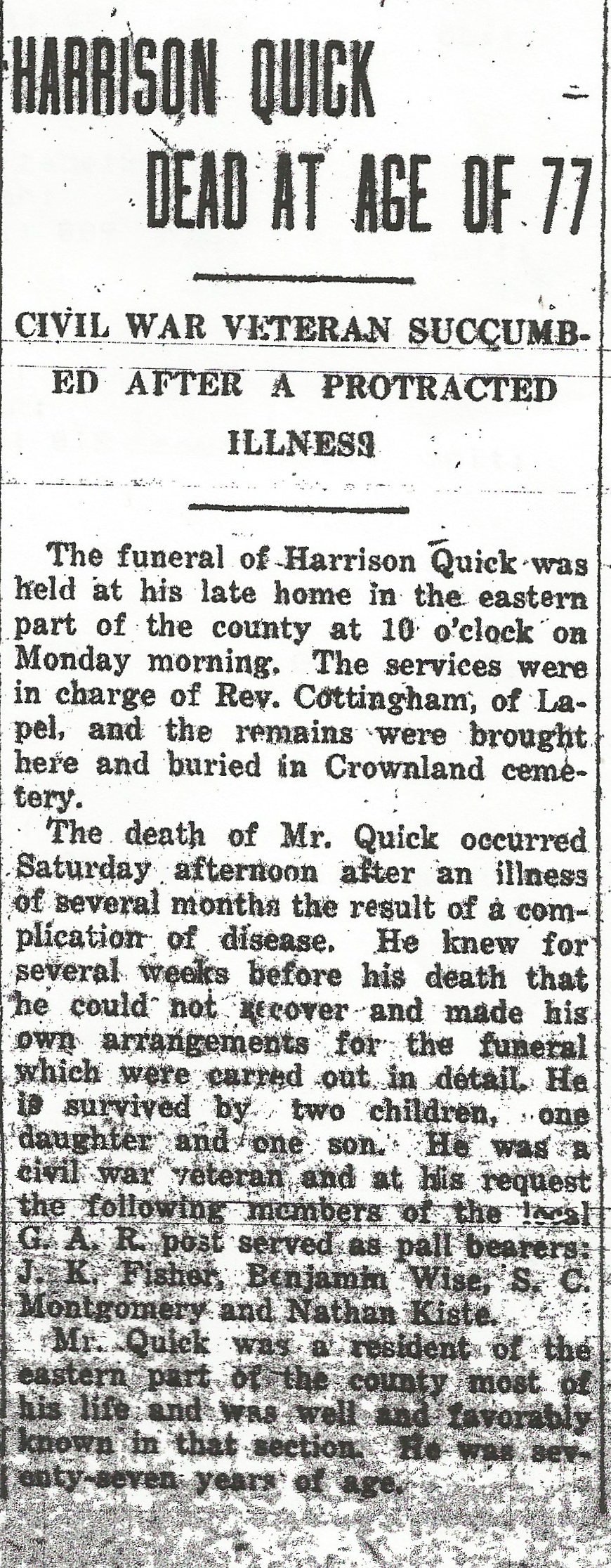 Place of Burial: Bethel Cemetery, Fountain County, Indiana, USA